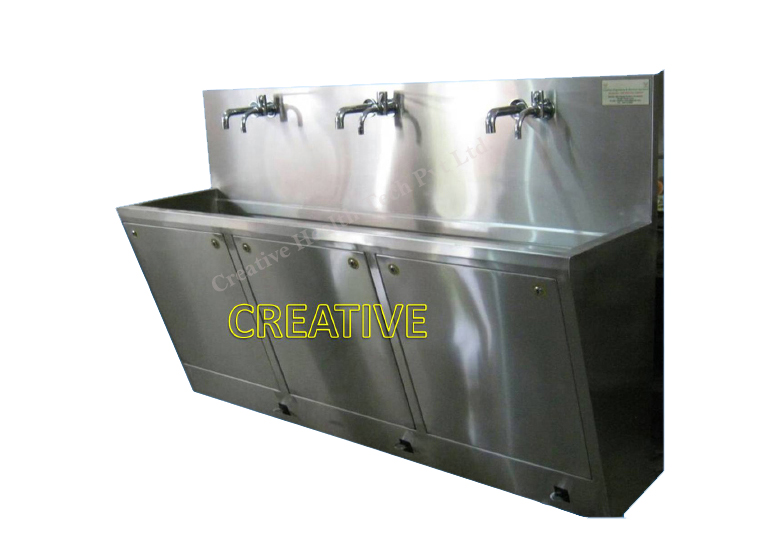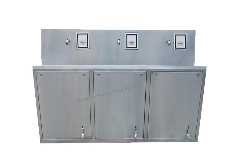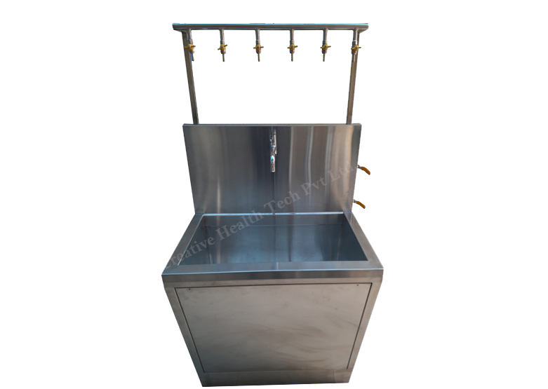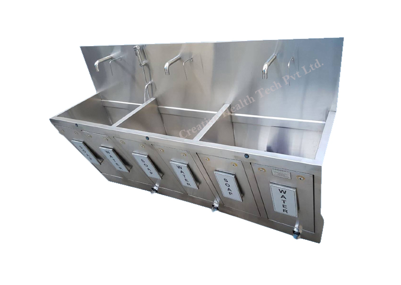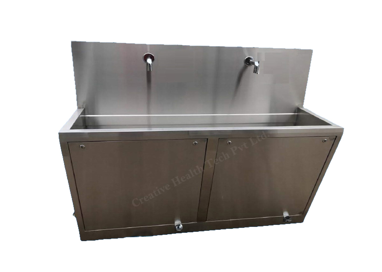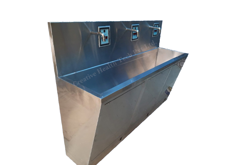 The scrub station’s fixtures are made of heavy gauge type 304 stainless steel that has been seamless welded and polished to a satin finish. It has a front access panel that can be removed to gain access to the controlled value. It is a must-have because of all of these outstanding qualities.